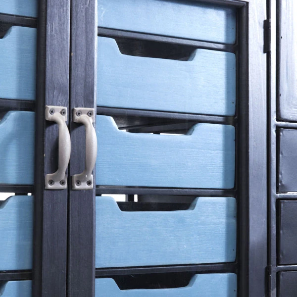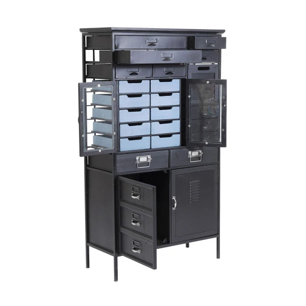 Deze Kare Design Art Factory kast heeft een zwarte afwerking, maar je vindt in de Art Factory serie ook een naturel houten variant. Terwijl de zwarte kast echt in een industriële woonstijl past gaat de naturel kast ook samen met een landelijk interieur.