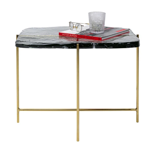 De Kare Design Ice salontafel is voorzien van een dikke glasplaat met een bijzondere structuur: alsof je een laag ijs uit een bevroren meer hebt gehakt. En op een gouden standaard hebt gelegd! Want de slanke, messingkleurige poten vormen een stijlvolle basis voor de dikke glasplaat. Zie jij de salontafel al pronken in je zithoek? Met een breedte van 63 centimeter is de salontafel heerlijk compact.
