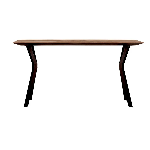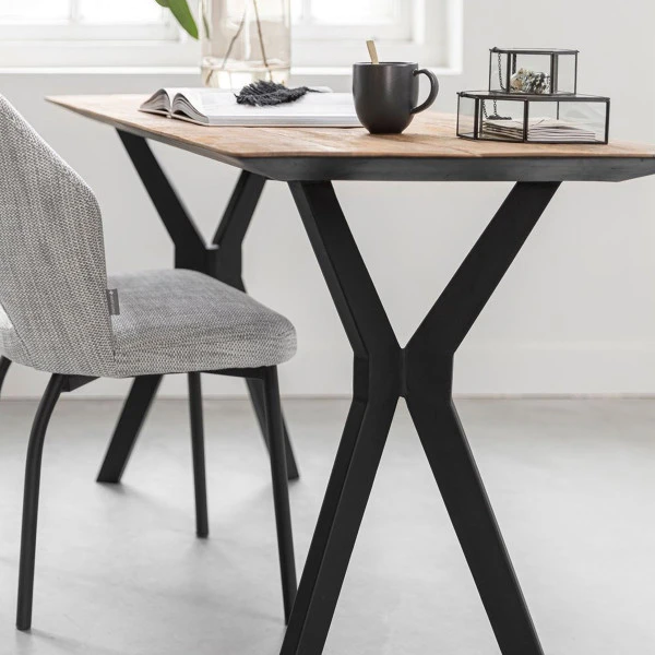 - Bureaublad van licht opgeschuurd teakhout met voelbare houtstructuur en een beschermende, matte laklaag