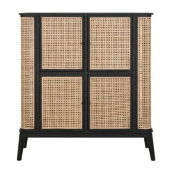- 2 deuren van zwart metaal en glas, 2 deuren van teakhout
