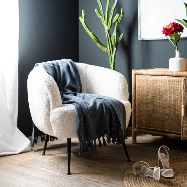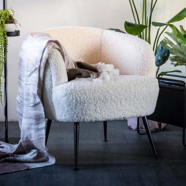 De By-Boo Babe fauteuil heeft een moderne uitstraling met zijn slanke poten en schapenvachtje van kunstwol. Gebruik de fauteuil als aanvulling op je moderne zithoek. Of kleed er de kale hoek van de woonkamer mee aan; gecombineerd met een gezellige leeslamp en een grote, groene plant biedt de fauteuil zo een heerlijke leesplek!