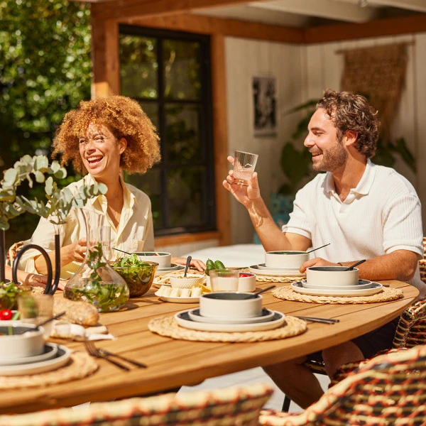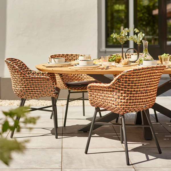 - Ovaal tafelblad van duurzaam teakhout (FSC gecertificeerd)
