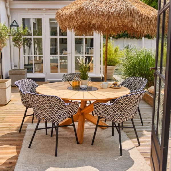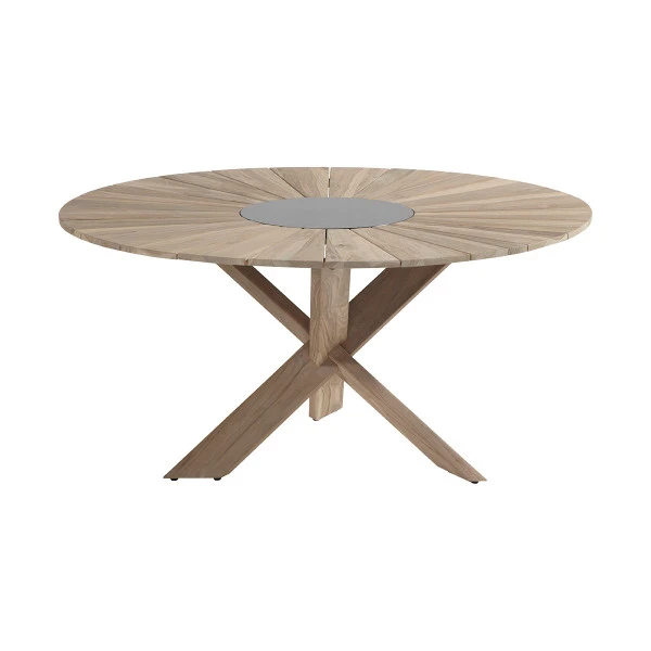 - Rond tafelblad van duurzaam teakhout (FSC gecertificeerd) en graniet