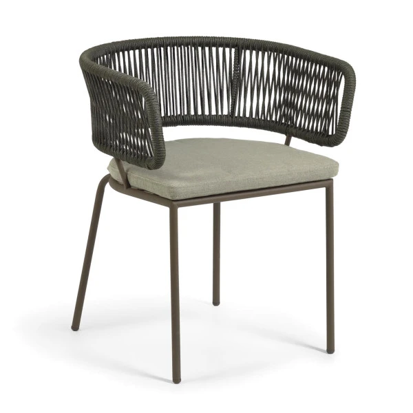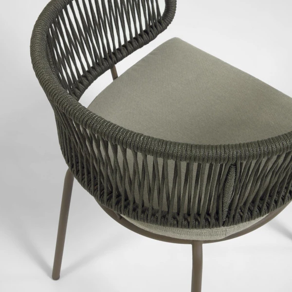 De Kave Home Nadin eetstoel combineert design met comfort. De moderne lijn krijgt bovendien een gezellig karakter dankzij het touw en kussen! Zo maakt de eetstoel je terras mooi en sfeervol, en kun je heel wat zomeravonden genieten van een luxe maaltijd in de buitenlucht. De eetstoel van touw is verkrijgbaar in oranje en groen!