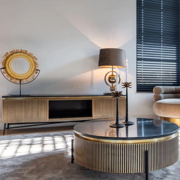 Tv-meubel messing en marmer