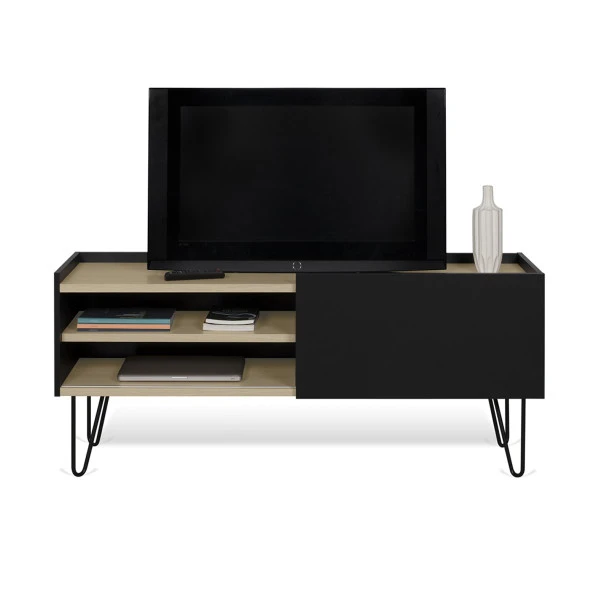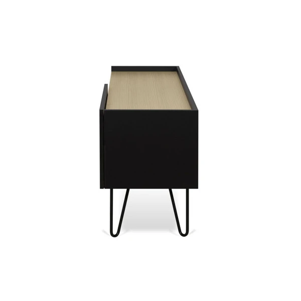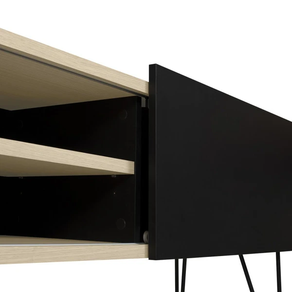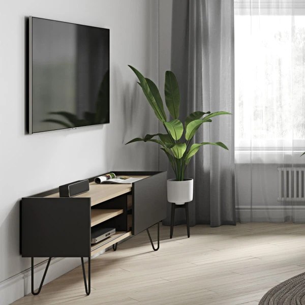 De meubels uit de TemaHome Nina serie gaan uitstekend samen met de Scandinavische design woonstijl. Behalve dit tv-meubel vind je in de serie ook een dressoir in mat zwart of wit, met eiken planken als sfeervol element.