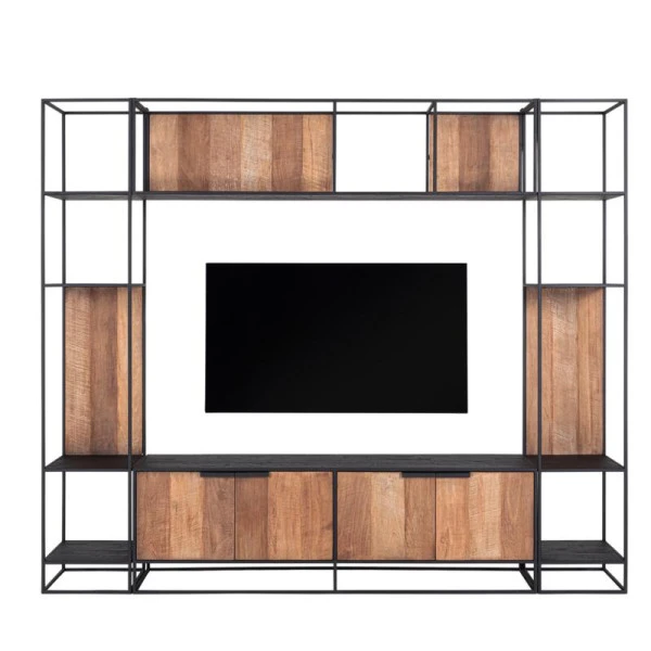 - Kast bestaat uit de gekozen tv meubel, 2 kasten aan de zijkant en het rek aan de bovenzijde