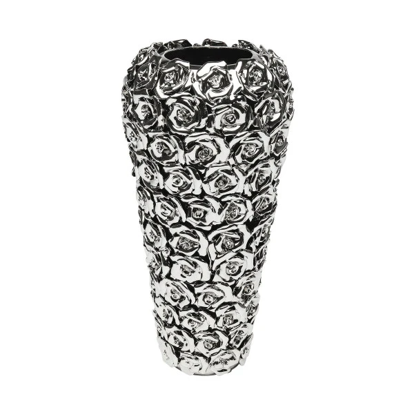 In de Kare Design Rose Multi Chrome vaas hoef je niet eens bloemen te zetten; de rozen op de vaas doen zelf al hun werk! Maar natuurlijk wordt je huis er nog gezelliger op wanneer je een paar prachtige lelies of echte rozen gebruikt. De vaas is met de hand gemaakt van aardewerk en verchroomd voor een extravagante look.