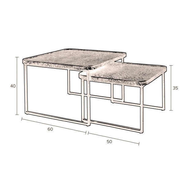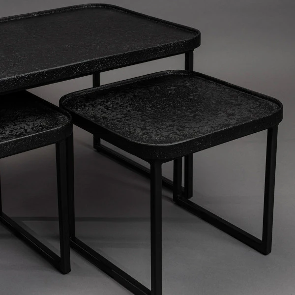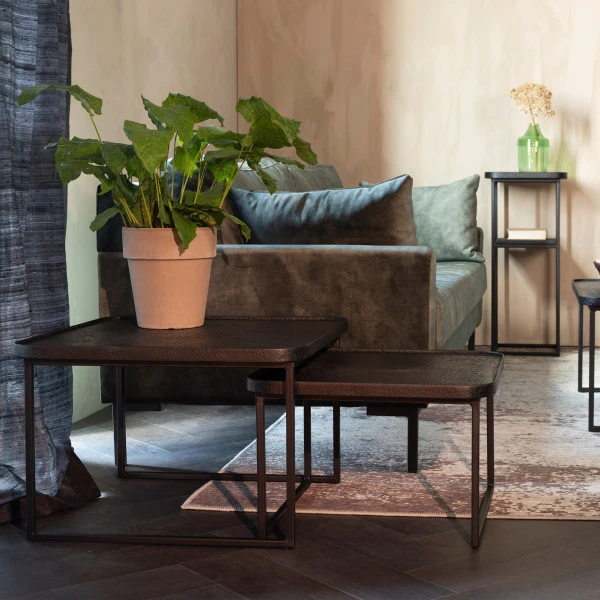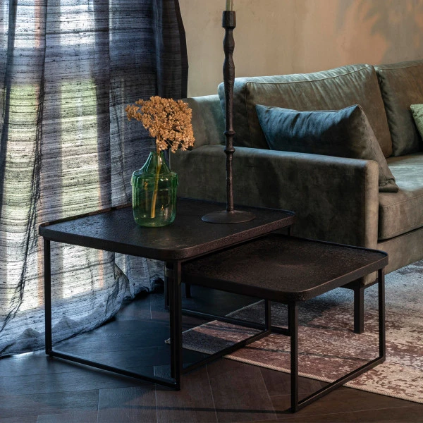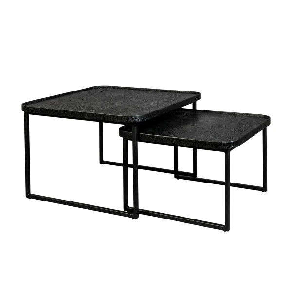 - Set van 2 vierkante salontafels met een stoere, mat zwarte metaal afwerking