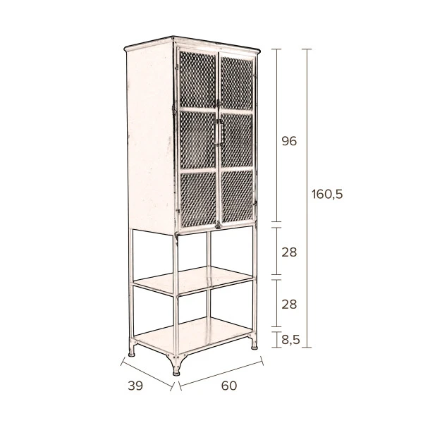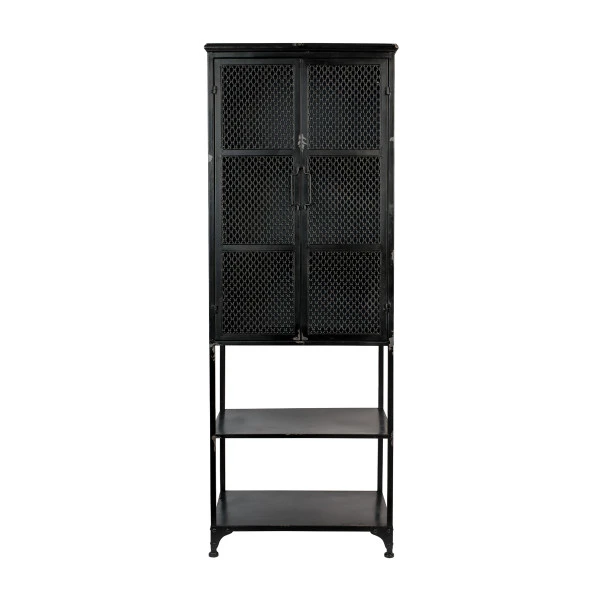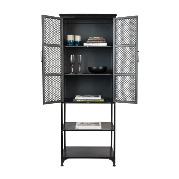 Bijzonder aan de Dutchbone Denver wandkast zijn de zwart metalen deuren met roosters in ruitpatroon: die geven de wandkast een vintage look. Ook de verweerde afwerking van het metaal draagt daar natuurlijk aan bij. Je kunt de hoge wandkast voor allerlei doeleinden gebruiken! Zet serviesgoed achter de doorschijnende deuren en gebruik de open vakken voor je mooiste schalen. Of berg boeken, wijnglazen en tijdschriften op in de zwart metalen wandkast.