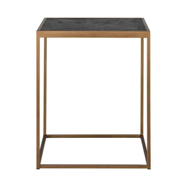 Wat deze Richmond Interiors Blackbone bijzettafel zo stijlvol maakt is in de eerste plaats het roestvrij stalen onderstel. Daarbij heb je keuze uit drie kleuren coating: goud, messing of zilver. Alle drie de varianten vormen een prachtig geheel met het blad van zwart eikenfineer, waarin een even stijlvol visgraat patroon is gelegd! De bijzettafel past met een formaat van 50 bij 50 centimeter mooi naast de bank.