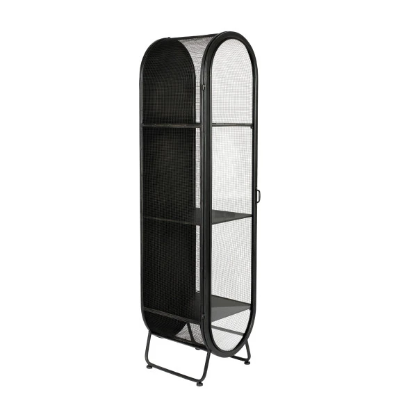 De Dutchbone Oval vitrine vormt een bijzondere decoratie in je interieur, al voordat je de kast vult met accessoires. Het ovale design is net even anders dan anders! Ook de zijpanelen van metaalgaas geven een uniek accent. De mix van zwart metaal, metaalgaas en glas maakt de stoere vitrine uitermate geschikt voor in een industriële woonstijl.