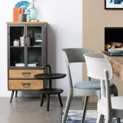 Net als deze halfhoge vitrinekast hebben de andere meubels uit de Damian serie een industriële look met een design tintje. Zet de vitrinekast in de woonkamer tegen de muur en plaats een hoog wijnkabinet tussen de open keuken en de woonkamer voor een gezellig geheel!