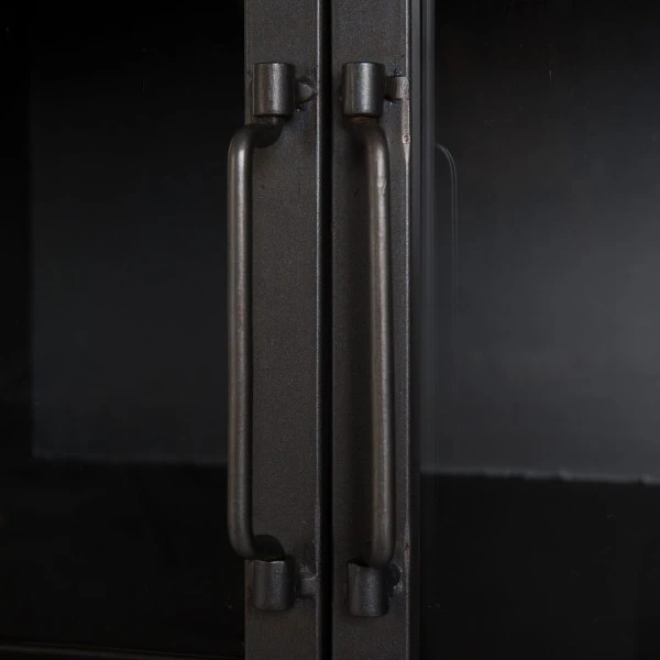 Deze halfhoge vitrinekast is gemaakt van sparrenhout en grijs ijzer: voor een industriële look. Toch past de vitrinekast ook goed in een modern interieur dankzij de strakke lijnen en speelse pootjes. Achter de glazen deuren is plaats voor je mooiste serviesgoed, of zet daar de reissouvenirs van al je vakanties neer! In de lades kun je losse rommeltjes kwijt en ook bovenop de halfhoge vitrinekast is nog ruimte voor een decoratie.