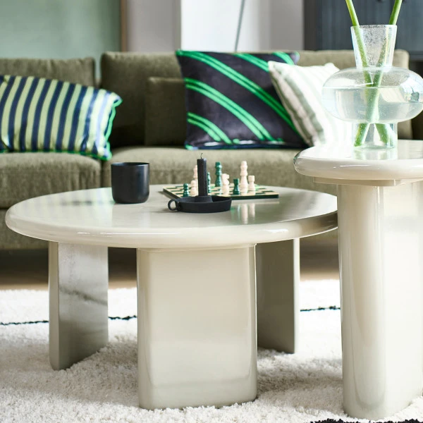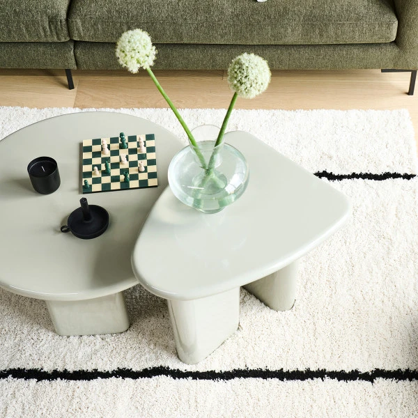 Combineer de VTwonen Beach bijzettafel met een mangohouten salontafel uit dezelfde serie. Je kunt de bijzettafel naast de bank zetten, maar ook bij de ronde salontafel op het vloerkleed: zo creëer je een speelse set! De klei-kleurige tafels passen mooi in een retro of modern interieur.