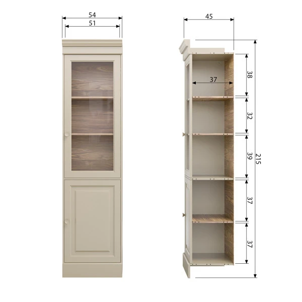 Met de VTwonen Chow serie pas je jouw vitrinekast helemaal aan de eetkamer aan. Want behalve deze 54 centimeter smalle kast omvat de serie ook een breder model. Combineer de grenen kasten zodanig dat de muur in je eet- of woonkamer helemaal gevuld is!