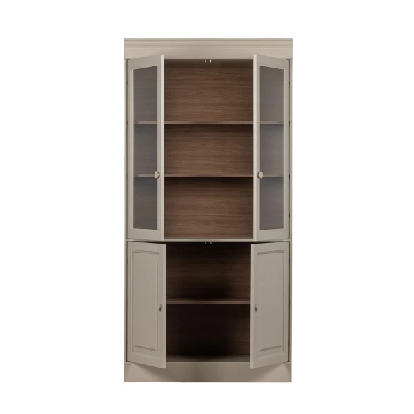 De grenen VTwonen Chow vitrinekast heeft een landelijke uitstraling, maar dan wel met een strakke en moderne afwerking. Achter de glazen deuren komt je mooiste serviesgoed prachtig tot recht! Voor schalen, pannen en alledaagse borden is plaats achter de grenen deuren. Met een breedte van 105 cm en vier deuren kun je in deze vitrinekast heel wat spulletjes kwijt