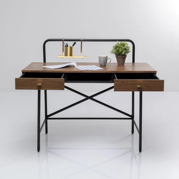 Maar het Kare Design Ready To Work bureau is meer dan alleen mooi; het is ook praktisch. Het blad biedt genoeg ruimte voor een bureaulamp naast je laptop, en aan het frame hangt een messingkleurig plankje met een bakje voor pennen. Aan het einde van de dag ruim je papieren en kantoorartikelen weer netjes weg in de twee lades van je walnoot bureau!