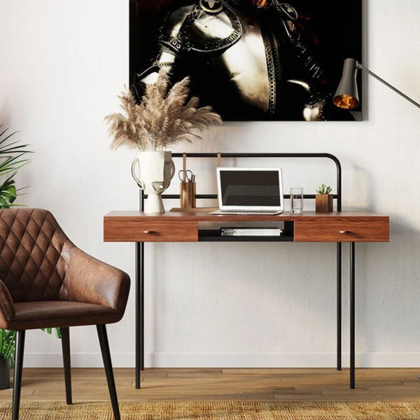 - Bureaublad van MDF met hoogwaardig walnootfineer. Afgewerkt met beschermende lak