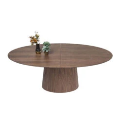 Met de Kare Design Benvenuto eettafel is je eetkamer in één klap voorzien van sfeer. Het walnootfineer heeft een warme uitstraling en gaat mooi samen met houten vloeren. Bovendien tover je het ovale blad zó om tot een nog groter model met extra ruimte; de verstelbare eettafel is ideaal wanneer je graag voor gasten kookt! Met een stel luxe stoelen krijgt de tafel een design uitstraling.