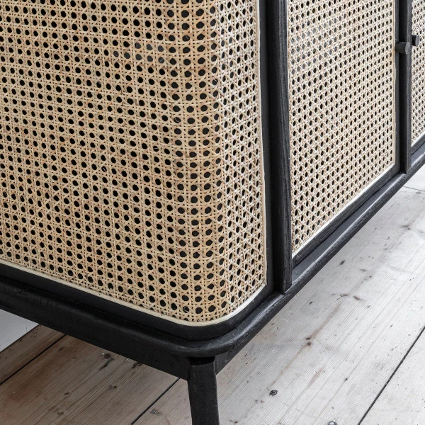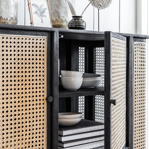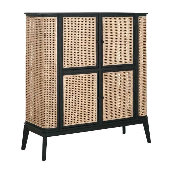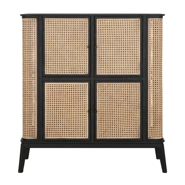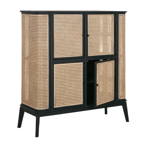 De Must Living Raffles wandkast brengt een gezellige retro look naar je woonkamer! De deuren en zijdes zijn gemaakt van naturel rotan webbing. Ook de ronde hoeken en de speelse, zwarte poten geven de wandkast een retro uitstraling. Achter de vier deuren is plaats voor boeken en fotoalbums, speelgoed en spelletjes, theemokken en wijnglazen; wat jij maar wil!