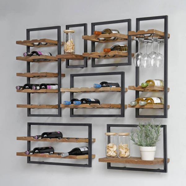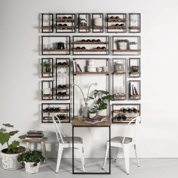 De d-Bodhi Shelfmate Natural serie zit boordevol sfeervolle houten planken met een metalen frame. Kies je favoriete formaat en model, of combineer er een aantal voor een speels effect! Er is ook een wijnrek met plaats voor flessen én glazen; of hang een gewone wandplank aan de wand naast het wijnflessen rek en zet daar glazen op.