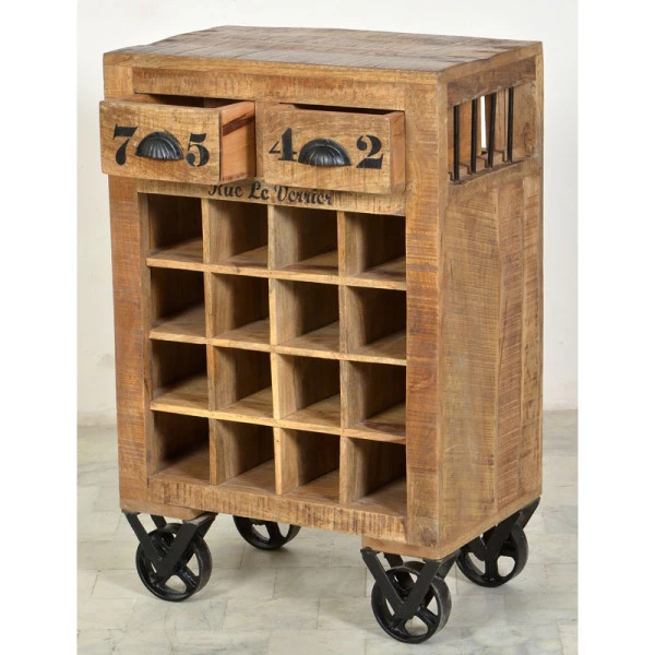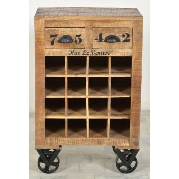 Wijnrek met tekst op wielen