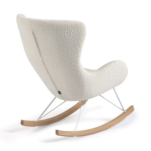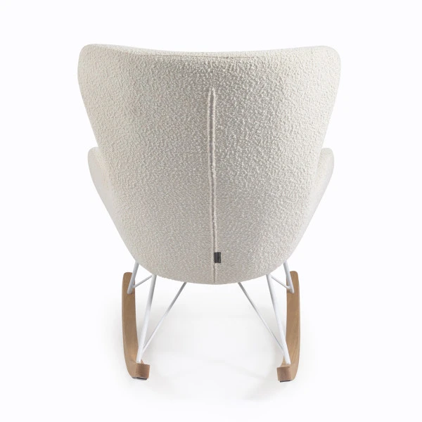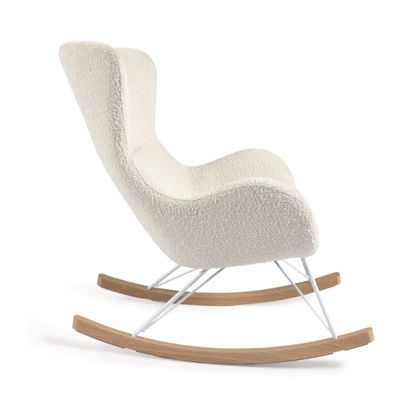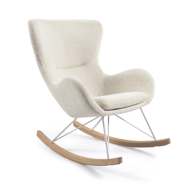 De Kave Home Vania schommelstoel van witte bouclé stof nodigt je uit om alles uit handen te laten vallen en gewoon even lekker te ontspannen. De zachte kussens en zachte schommelbeweging brengen je gegarandeerd tot rust! Of zet de schommelstoel op de kinderkamer, neem je kleintje op schoot en lees zachtjes wiegend een boekje voor: slapen is vervolgens geen probleem meer.