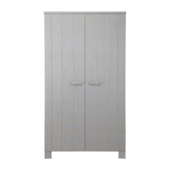 Het stoer landelijke kledingkast is verkrijgbaar in drie kleuren: wit, lichtgrijs of donkergrijs, voor de ideale match met je slaapkamerinterieur. Elk exemplaar is uniek en dat maakt de kast extra bijzonder! Hang je nette jasjes en broeken aan de roede links, en geef shirts en truien een plek op de legplanken. Voor een mooi geheel combineer je met het bijpassende nachtkastje uit dezelfde Dennis serie van Woood.