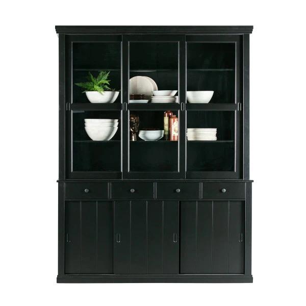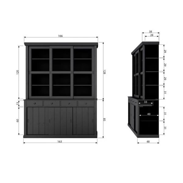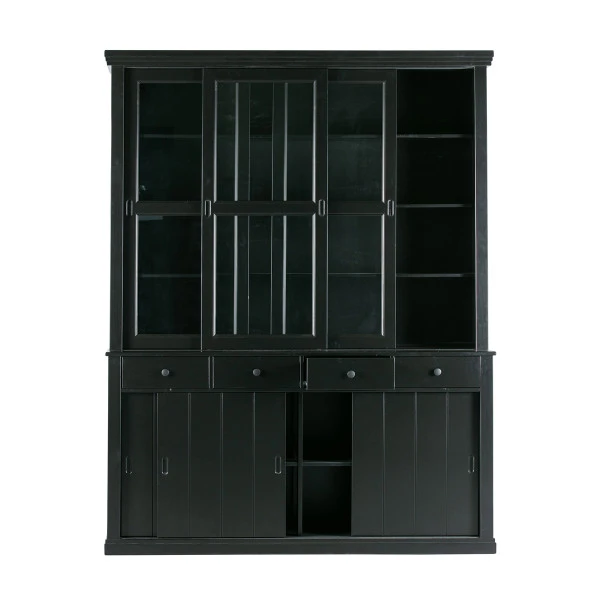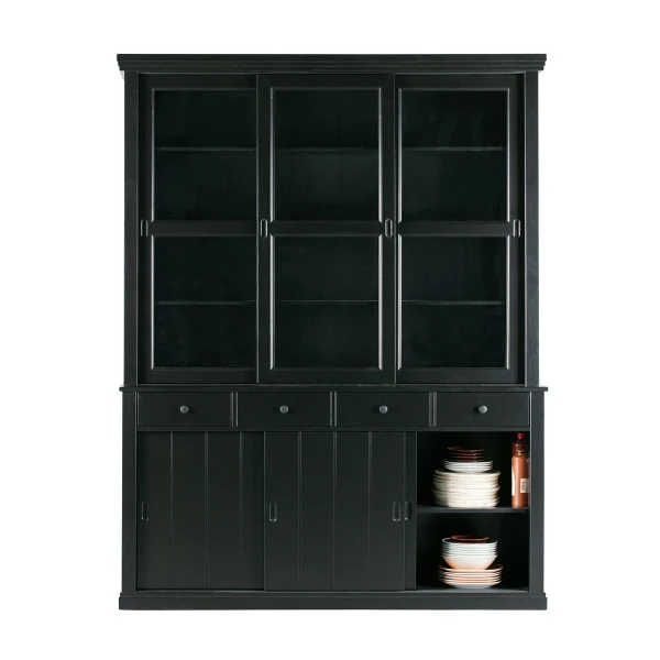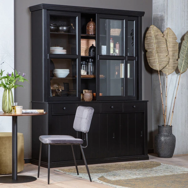 Bijzonder aan de Woood Lagos buffetkast is de zwarte afwerking van het FSC-hout. Daardoor zorgt de buffetkast voor een landelijk, stoer effect in je interieur! Zet je mooiste serviesgoed achter de glazen vensters; met drie deuren biedt de buffetkast veel ruimte. Ook onderin de buffetkast is nog plaats voor schalen, borden en pannen. In de zwarte lades kun je bestek en onderzetters kwijt!