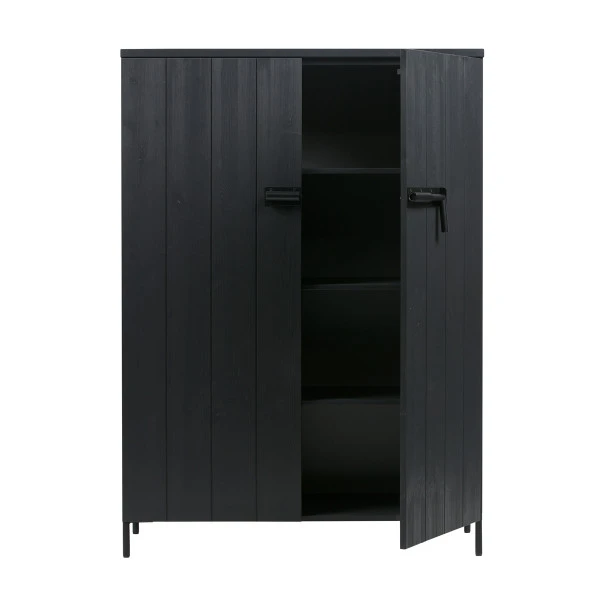 Je kunt de Woood Bruut wandkast voor allerlei doeleinden gebruiken. Voor linnen bijvoorbeeld, op de overloop of slaapkamer. Of zet de zwarte houten wandkast juist vol in het zicht in de woonkamer en berg er allerlei losse rommeltjes in op: voortaan ziet je woonkamer er netjes opgeruimd uit! Ook handig voor serviesgoed in de eetkamer.