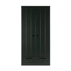 Bijzonder aan deze Woood Connect kledingkast is de mix van landelijk, modern en stoer industrieel. De landelijke look overheerst, maar de 2-deurs kledingkast heeft ook details van een lockerkast! Bovendien heb je keuze uit verschillende interieurs: met een breed hanggedeelte, of juist met extra legplanken. Twee lades maken de zwarte kledingkast compleet.