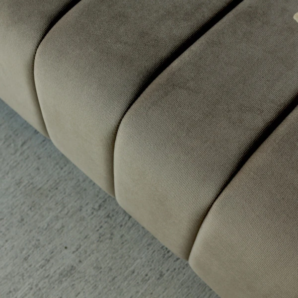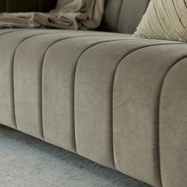 De ontwerpers van de Vivilla Vive bank hebben veel zorg besteed aan het zitcomfort. Nozag vering, koudschuim en een heerlijk zachte bekleding maken de 3 zits bank net zo comfortabel als het design doet vermoeden! De zandkleurige bank past dankzij de ribbels in de bekleding heel mooi in een retro interieur.