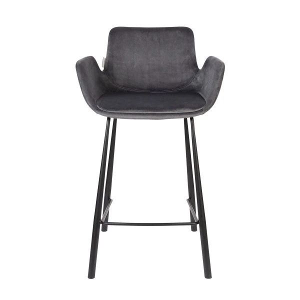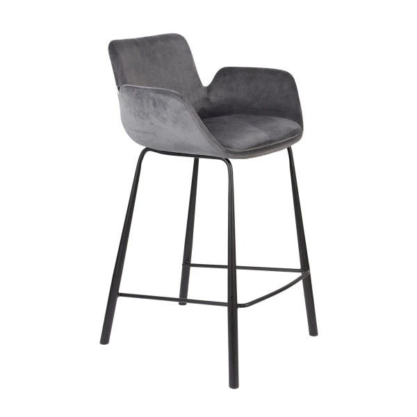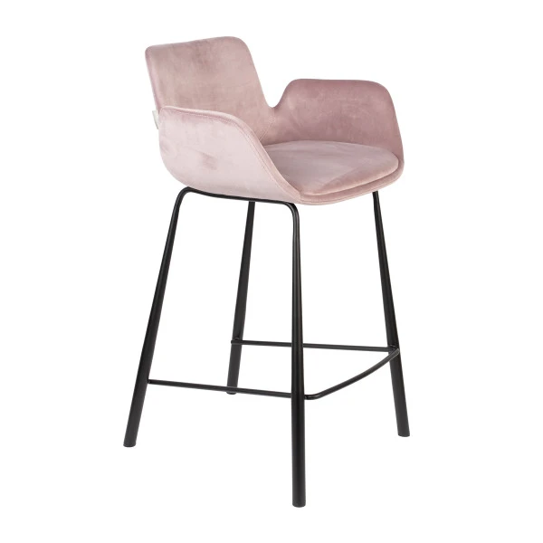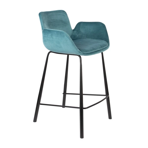 Kenmerkend voor de Zuiver Brit serie is het elegante design met armleuningen in de vorm van vleugels. Slanke, speelse poten van zwart gepoedercoat metaal maken de meubels compleet. Behalve deze fluwelen barstoel vind je in de serie ook een leren barstoel én bijpassende eetkamerstoelen.