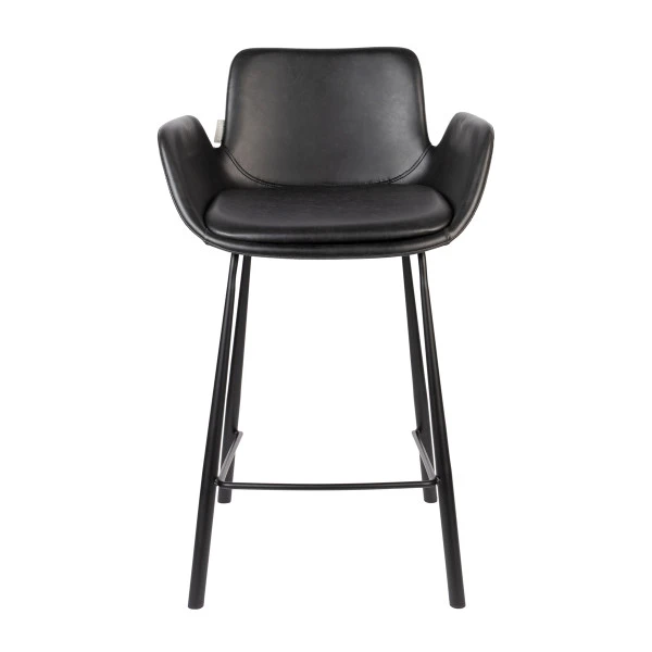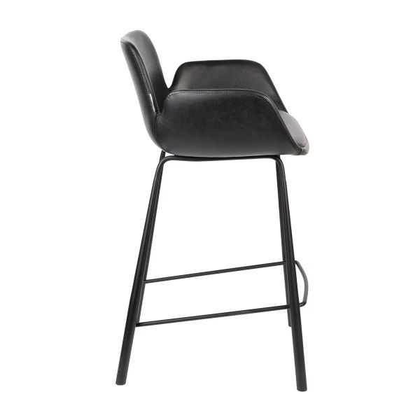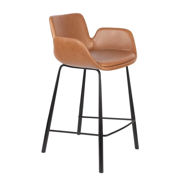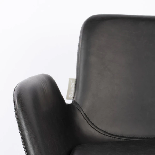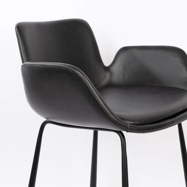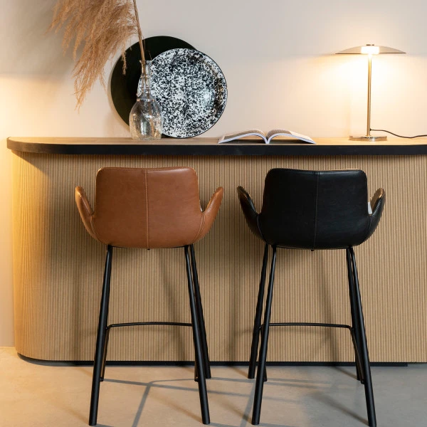 Kenmerkend voor de Zuiver Brit serie is het elegante design met armleuningen in de vorm van vleugels. Slanke, speelse poten van zwart gepoedercoat metaal maken de meubels compleet. Behalve deze leren barstoel vind je in de serie ook een fluwelen barstoel én bijpassende eetkamerstoelen.