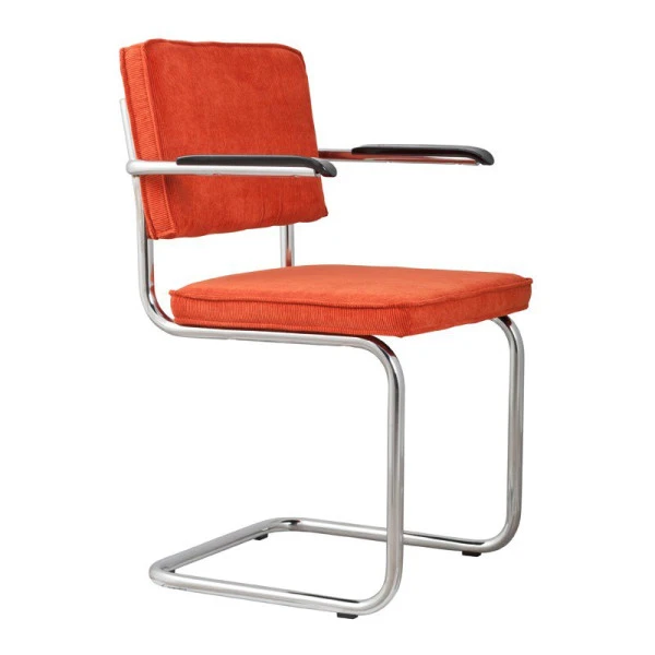 Met de Zuiver Ridge Rib armstoel creëer je een retro look aan tafel! Dat komt door de mix van een chromen sledeframe met een gezellige ribstof. Die is bovendien verkrijgbaar in 8 verschillende kleuren. Wil jij een vrolijke eethoek? Combineer dan bijvoorbeeld oranje met rood en zwart. Voor een échte retro look kies je natuurlijk geel en bruin! Liever neutraal? De chromen armstoel is er ook met een grijze ribstof.