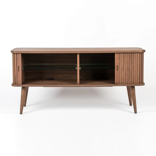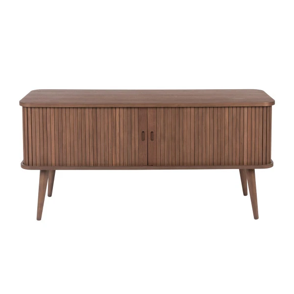 Met dit Zuiver Barbier Walnut tv-dressoir staat je apparatuur netjes uit zicht; als je televisie gaat kijken kun je naar wens de roldeuren een stukje open zetten! Met een breedte van 120 centimeter past het tv-meubel in de meeste zithoeken. Twee glazen planken achter de walnoot roldeuren maken de retro look compleet. Maar het dressoir is natuurlijk ook geschikt voor het opbergen van serviesgoed of boeken!