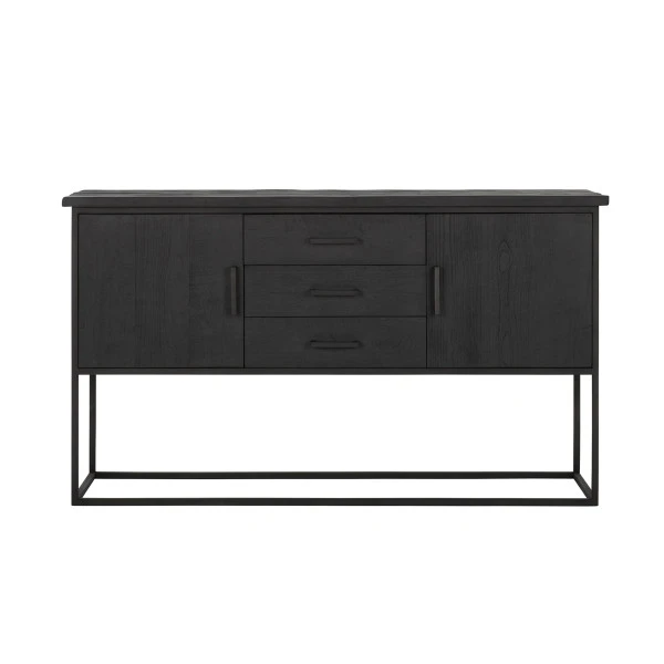 Dit DTP Home Timeless Black dressoir brengt een modern- industriële stijl naar je woonkamer. Het zwart gelakt teakhout geeft het dressoir een robuust karakter, terwijl de strakke lijnen van het metalen onderstel voor een design look zorgen! Het Beam No.2 dressoir heeft twee deuren en drie lades, zodat je voor allerlei soorten rommeltjes een eigen opbergplaats hebt.