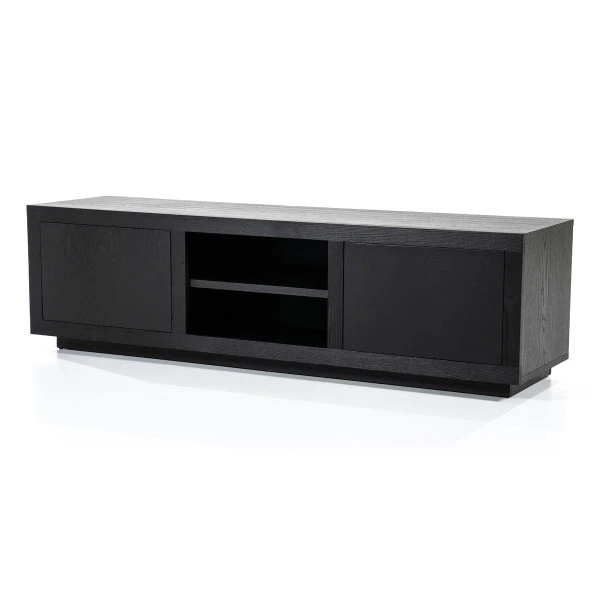 Het Eleonora Helsinki tv-meubel van 160 cm breed brengt rust naar je zithoek. Het strakke, minimalistische design zorgt daarvoor; maar ook de opbergruimte in het tv-meubel! Ruim rommeltjes netjes weg achter de deuren van zwart eiken hout, en zet apparatuur of decoraties in de open vakken. De deuren werken met een fijn push-to-open systeem.