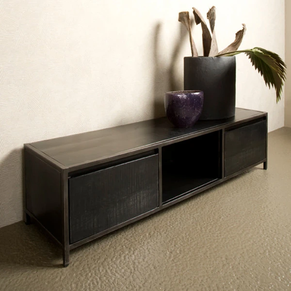 Dit stoere Tower Living Paterno tv-meubel vormt een bijzonder contrast met je moderne televisieapparatuur! Je hebt daarbij keuze uit twee formaten van dit houten tv-meubel: met een breedte van 145 of 180 centimeter. Zet apparatuur netjes in het open vak, dat voorzien is van een handige kabelopening voor de snoeren. Dvd’s, opladers en andere rommeltjes kun je achter de houten deuren bewaren!