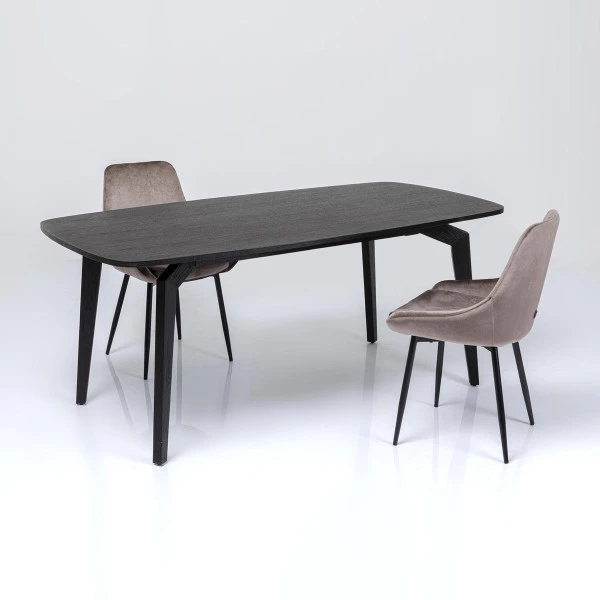De Kare Design Milano eettafel maakt indruk met een krachtig design. Een combinatie van afgeronde hoeken en gebogen poten geeft de zwarte eettafel een retro uitstraling! Het blad van eikenfineer is 18 mm dik; poten van massief hout maken het krachtige design compleet. Met een breedte van 180 centimeter biedt de zwarte eettafel ruimte aan vier tot zes personen.
