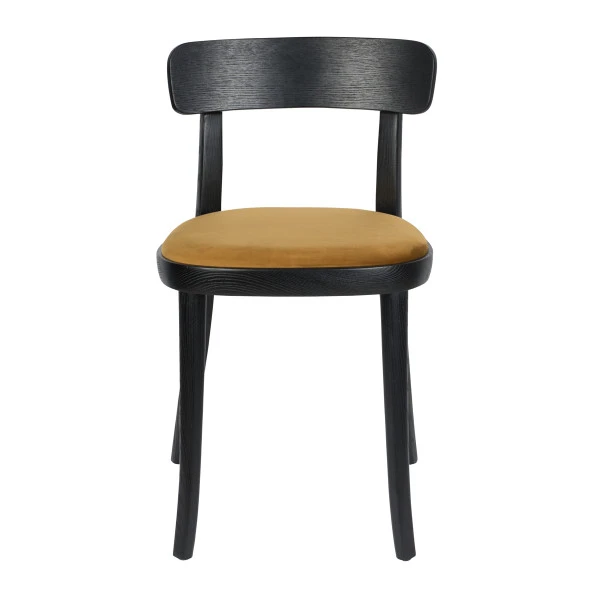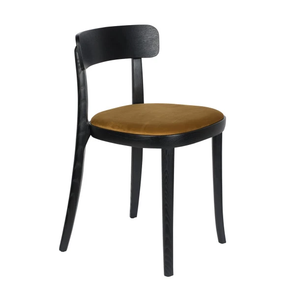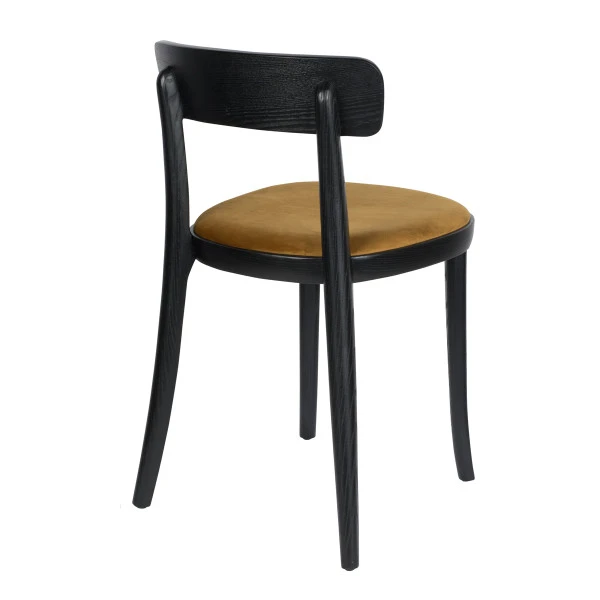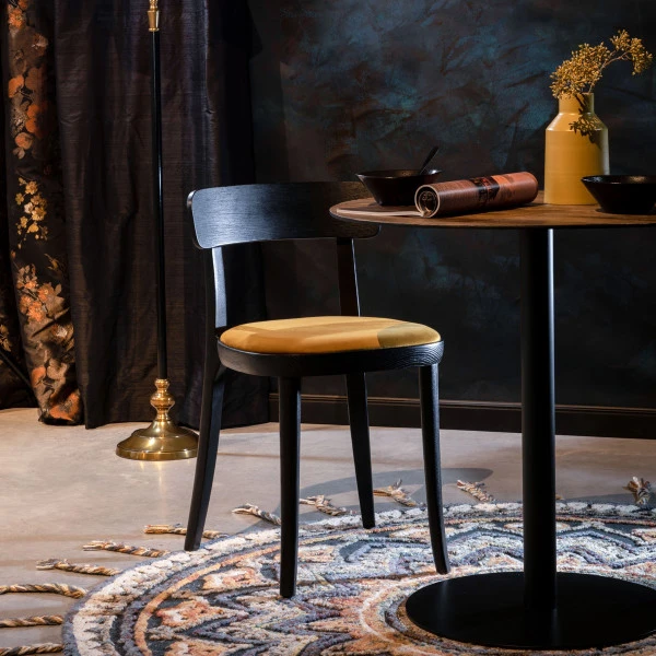 Bij de Dutchbone Brandon eetkamerstoel heb je keuze uit vier kleuren fluweel: donkerblauw, okergeel, roze of zwart. Te midden van het zwarte hout komen de fluwelen kussens extra mooi uit! Schuif je favoriete kleur aan een vintage eettafel, of combineer twee kleuren fluweel voor een speels effect.