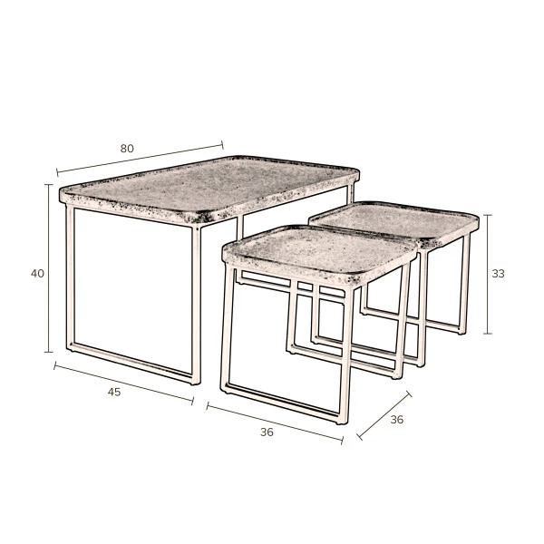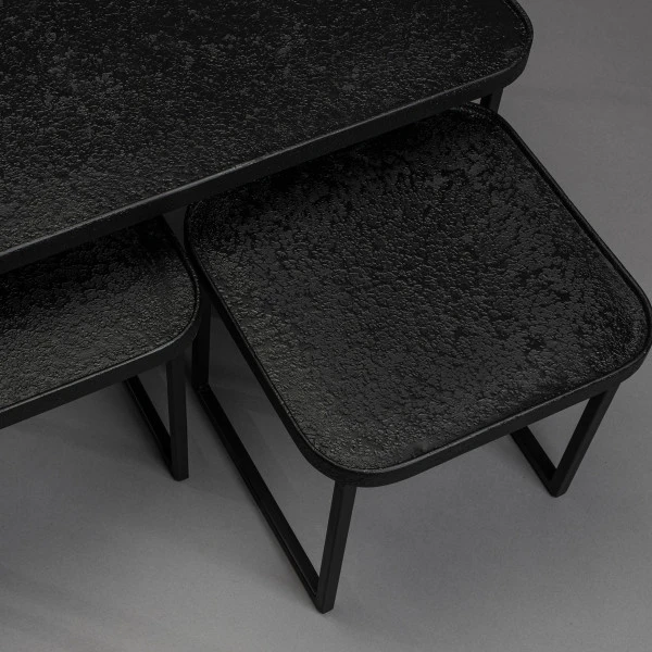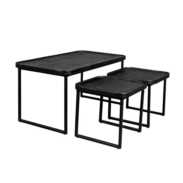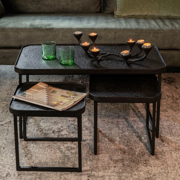 - Set van 3 salontafels met een stoere, mat zwarte metaal afwerking
